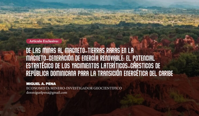 La transición energética hacia fuentes reno- vables en América Latina y el Caribe enfrenta un desafío crítico: la dependencia de elemen- tos de tierras raras (ETR) para tecnologías de magneto-generación. Este artículo analiza el rol fundamental de las tierras raras en la generación de energía renovable, con espe- cial énfasis en los recién descubiertos yaci- mientos laterítico-cársticos de la Sierra de Bahoruco en República Dominicana. A través de un análisis geoeconómico integral, se exa- mina cómo estos depósitos pueden transfor- mar la matriz energética caribeña y posicio- nar a la región como un actor estratégico en la cadena de suministro global de minerales críticos.